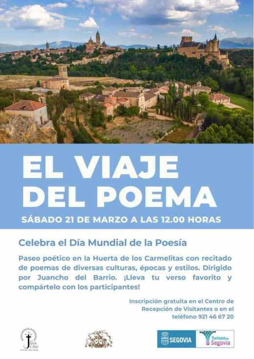 El área de Turismo de Segovia se suma a la celebración del Día Mundial de la Poesía con una propuesta que combina naturaleza, literatura y participación. El próximo 21 de marzo a las 12:00 horas, la Huerta de los Carmelitas se convertirá en escenario de un recorrido poético dedicado a San Juan de la Cruz, patrón de los poetas, en el marco de su año jubilar y su vinculación con la tradición literaria de la ciudad.